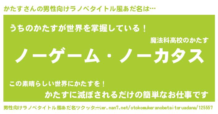 | 女子向けラノベタイトル風あだ名 | 『かたす恋絵巻』『横柄かたすと宰相陛下』 |