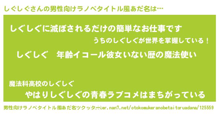 | ヒーロー風カッコイイあだ名 | 『ウルトラしぐしぐマン』『ネオシグシグ』 |