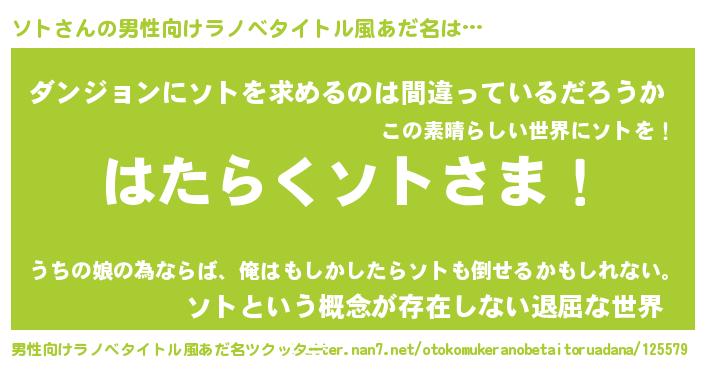 | 胡散臭い通販商品みたいなあだ名 | 『伝統あるサプリメント…その名も「ソト」』 |