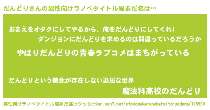 | 女子向けラノベタイトル風あだ名 | 『だんどり伯爵の花嫁』『だんどり恋絵巻』 |