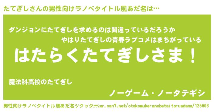 | ヒーロー風カッコイイあだ名 | 『黄金騎士タテ』『慈愛の使者たてぎし』 |