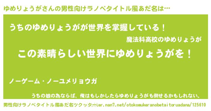 | 意味不明あだ名 | 『住所不定無職ゆめりょうが(91歳)』 |