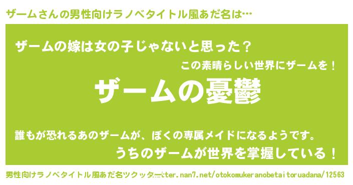 | 女子向けラノベタイトル風あだ名 | 『(仮)ザームのやんごとなき事情』 |