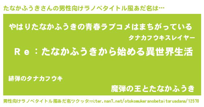 | 意味不明あだ名 | 『自称たなかふうき』 |