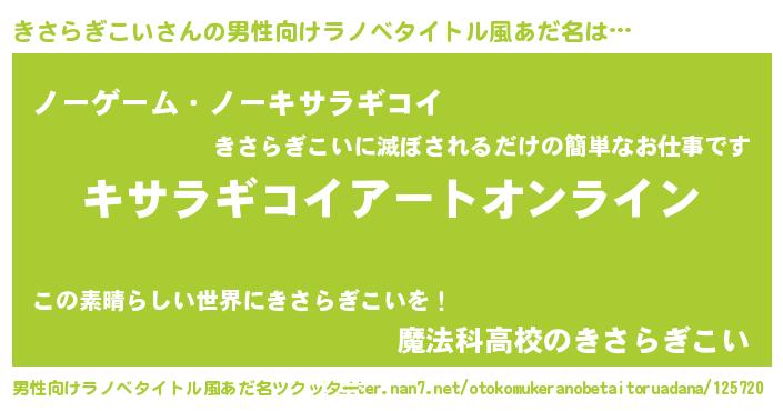 | 女子向けラノベタイトル風あだ名 | 『誰かこのきさらぎこいを説明してください! ~契約から始まるウェディング~』 |