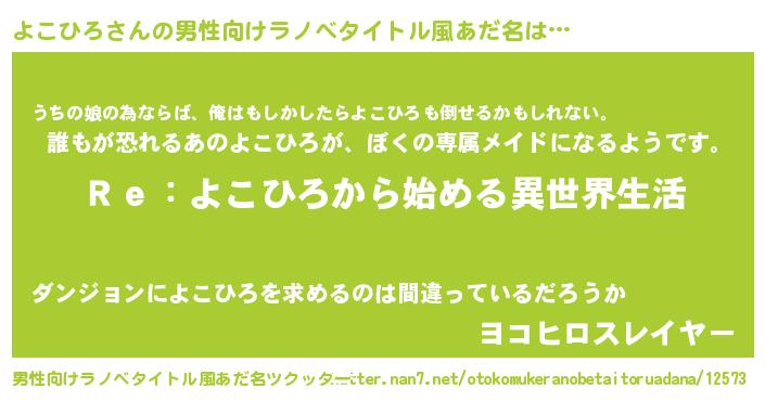 | 肩書あだ名 | 『よこひろ総統』『よこひろ国家主席』 |