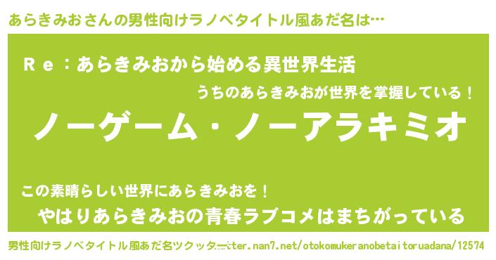 | 女子向けラノベタイトル風あだ名 | 『死神あらきみおの再婚』 |