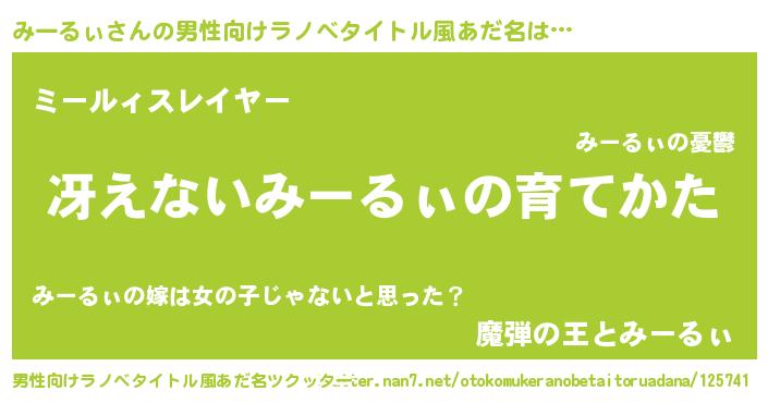| 女子向けラノベタイトル風あだ名 | 『男装みーるぃの憂鬱な任務』 |