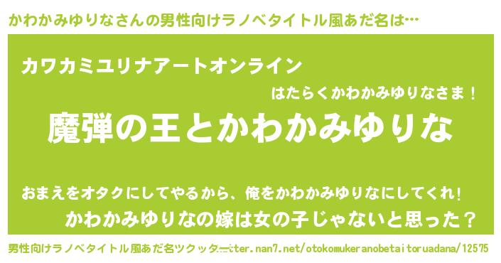 | 胡散臭い通販商品みたいなあだ名 | 『ハリウッド女優が絶賛した世界で10本だけ現存している希少なブランデー…その名も「かわかみゆりな」』 |