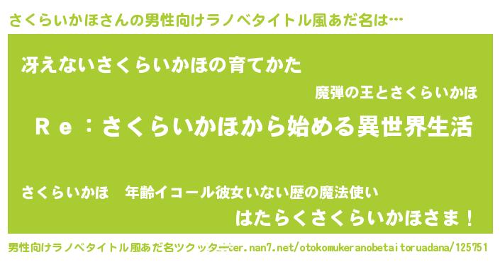 | 女子向けラノベタイトル風あだ名 | 『闇のさくらいかほ』 |