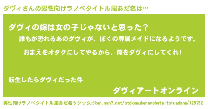 | 女子向けラノベタイトル風あだ名 | 『ダヴィ恋絵巻』『ダヴィの契約王妃』 |