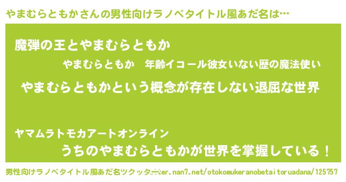 | 伝説のあだ名 | 『聞きしに勝る吟遊詩人やまむらともか』 |