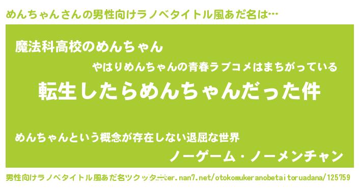 | 胡散臭い通販商品みたいなあだ名 | 『テレビで話題のアガリクス…その名も「めんちゃん」』 |