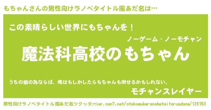 | 意味不明あだ名 | 『自称もちゃん』『めかぶ科もちゃん属』 |