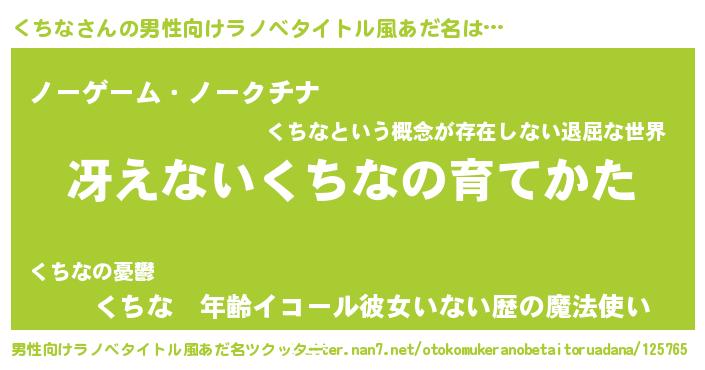 | 意味不明あだ名 | 『眠気覚ましガムくちな味』『自称くちな』 |