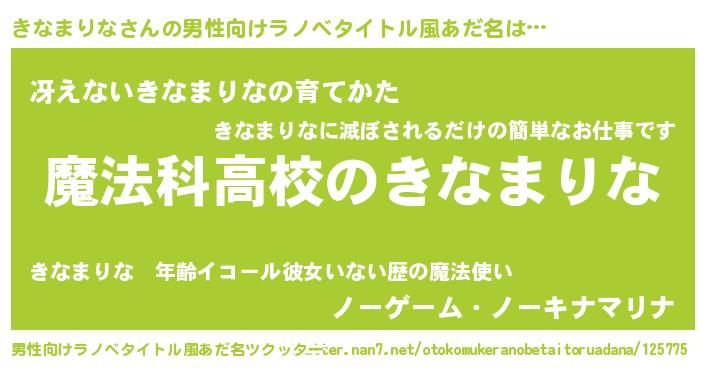 | 女子向けラノベタイトル風あだ名 | 『きなまりななんてお断りですっ。』 |