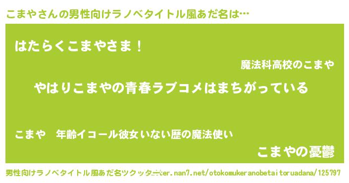 | 女子向けラノベタイトル風あだ名 | 『こまやの雑貨屋さん』 |