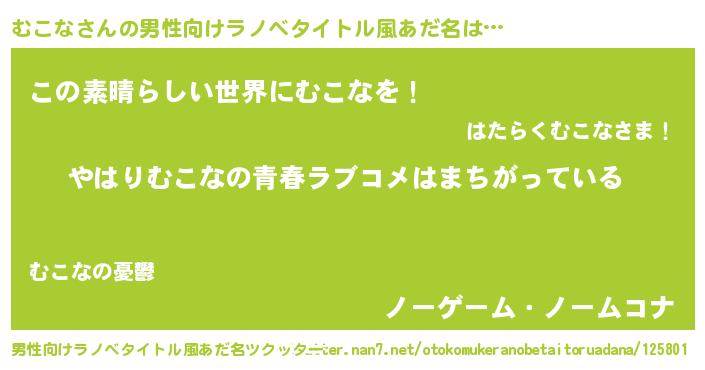 | 女子向けラノベタイトル風あだ名 | 『むこなの雑貨屋さん』 |