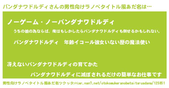 | 伝説のあだ名 | 『救世主となる錬金術士バンダナワドルディ』 |