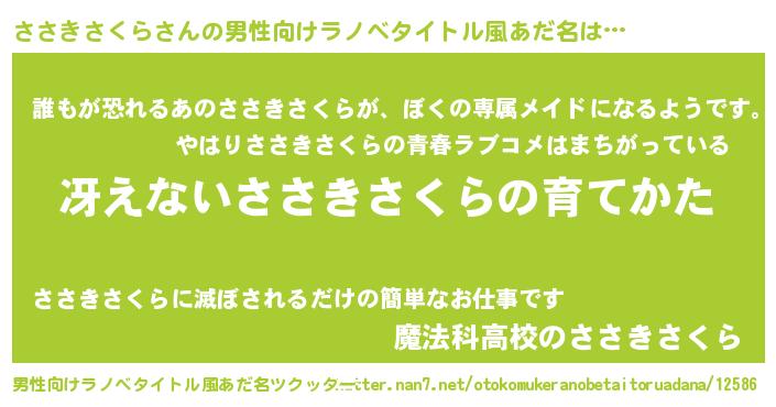 ささきさくらさんの男性向けラノベタイトル風あだ名をツクッター!