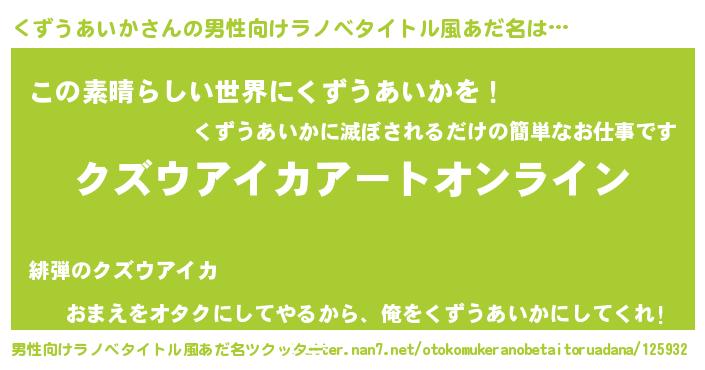 | 胡散臭い通販商品みたいなあだ名 | 『億万長者になれる霊験あらたかなお札…その名も「くずうあいか」』 |