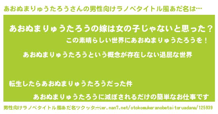 | 意味不明あだ名 | 『永久保存あおぬまりゅうたろう』 |