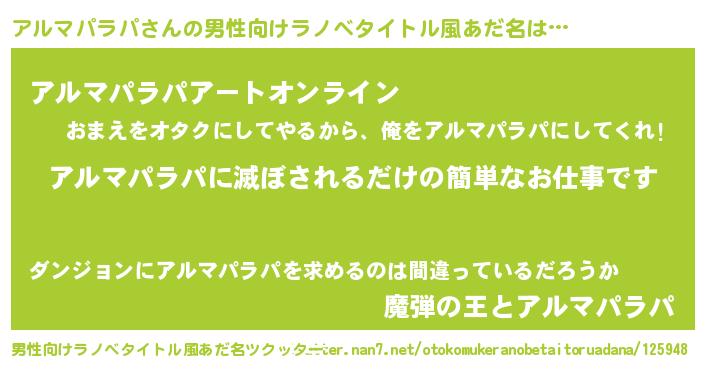 | 胡散臭い通販商品みたいなあだ名 | 『億万長者になれるブレスレット…その名も「アルマパラパ」』 |