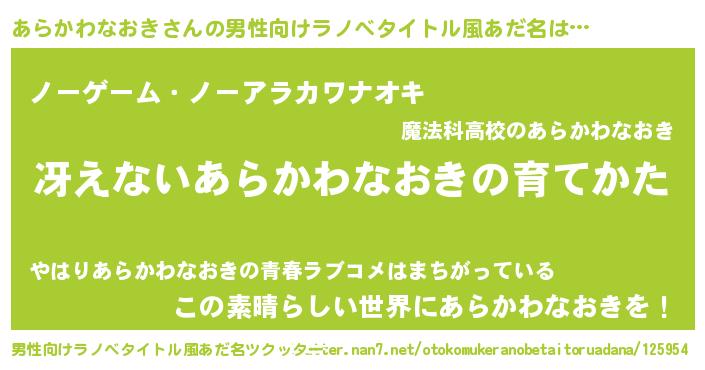 | 女子向けラノベタイトル風あだ名 | 『シンデレラあらかわなおき家の靴箱館』 |