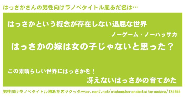 | ヘコむあだ名 | 『はっぷりん』『はっさか(震え声)』 |