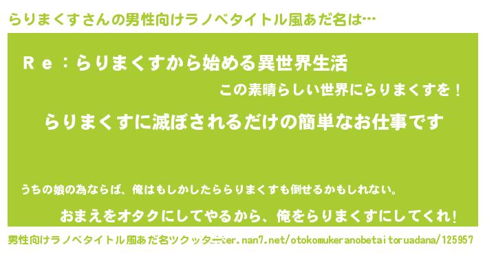 | 胡散臭い通販商品みたいなあだ名 | 『芸能人もオススメする冬虫夏草…その名も「らりまくす」』 |