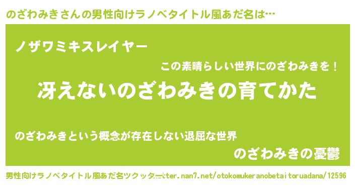 | 胡散臭い通販商品みたいなあだ名 | 『モテモテ間違いなし水晶球…その名も「のざわみき」』 |
