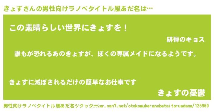 | 女子向けラノベタイトル風あだ名 | 『異世界でカフェきょすを開店しました。』 |