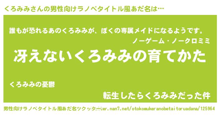 | 意味不明あだ名 | 『永久保存くろみみ』『ペロリンくろみみ』 |