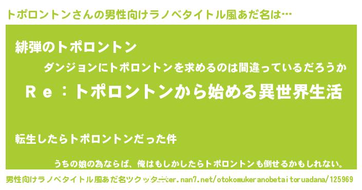 | 意味不明あだ名 | 『自称トポロントン』 |