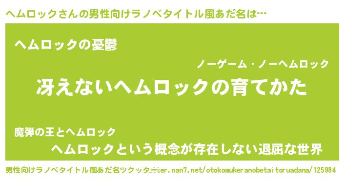 | 女子向けラノベタイトル風あだ名 | 『男装ヘムロックの憂鬱な任務』 |