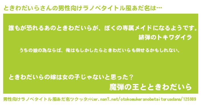 | 女子向けラノベタイトル風あだ名 | 『ときわだいらの婚約者』 |