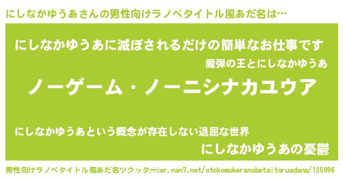 | 肩書あだ名 | 『にしなかゆうあ学部長』 |
