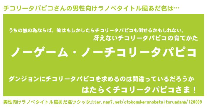 | 女子向けラノベタイトル風あだ名 | 『チコリータパピコ恋絵巻』 |