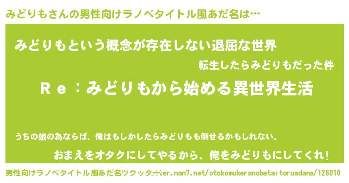 | ヘコむあだ名 | 『みどりも(苦笑)』『牛乳』 |