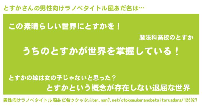 | 意味不明あだ名 | 『住所不定無職とすか(71歳)』『自称とすか』 |
