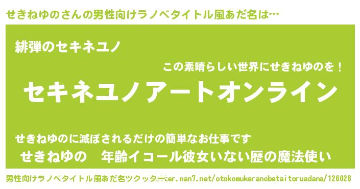 | 女子向けラノベタイトル風あだ名 | 『誰かこのせきねゆのを説明してください! ~契約から始まるウェディング~』 |
