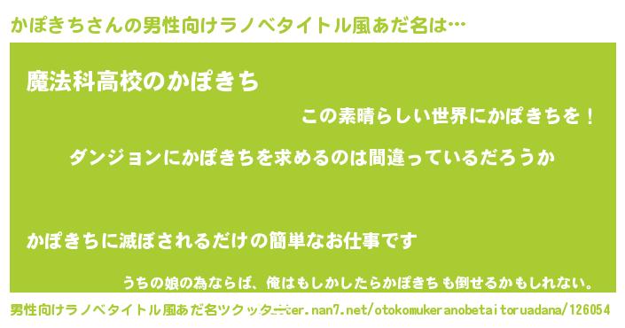 | 萌えアニメ | 主人公(かぽきち)のあだ名『 かぽっち』 |