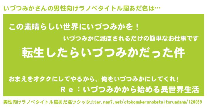 | 胡散臭い通販商品みたいなあだ名 | 『世界中を虜にした世界で10本だけ現存している希少なブランデー…その名も「いづつみか」』 |