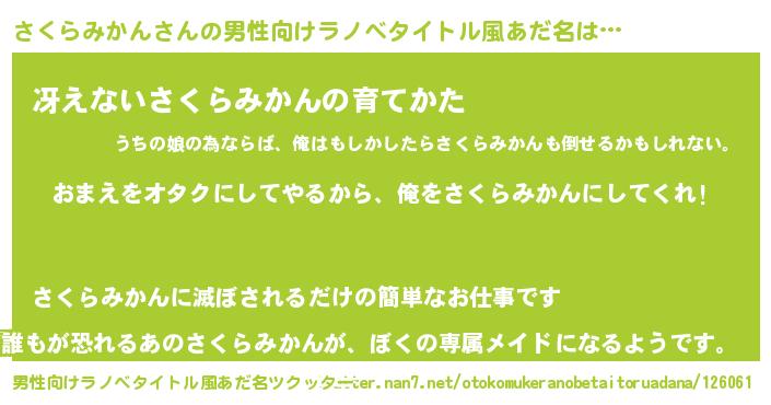 | ヘコむあだ名 | 『さくらみかん(笑)』『なまこ酢』 |
