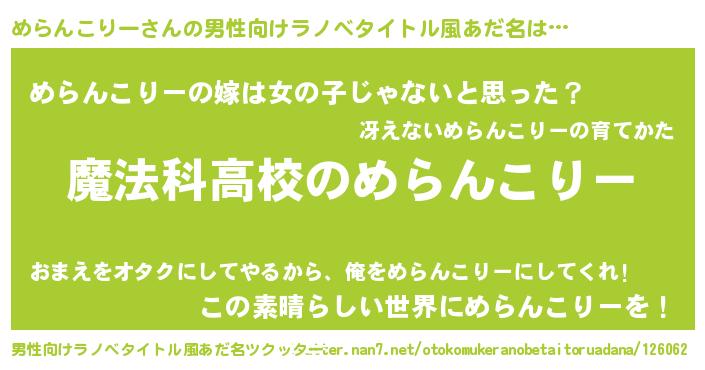 | 意味不明あだ名 | 『自称めらんこりー』 |