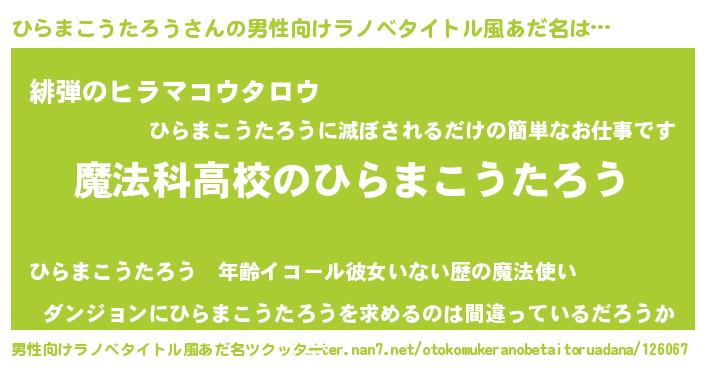 ひらまこうたろうさんの男性向けラノベタイトル風あだ名をツクッター!