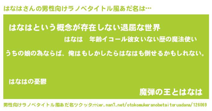 | 女子向けラノベタイトル風あだ名 | 『はなは伯爵の花嫁』 |