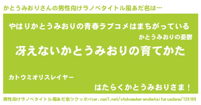 | 胡散臭い通販商品みたいなあだ名 | 『世界が平和になる高級そうな絵画…その名も「かとうみおり」』 |