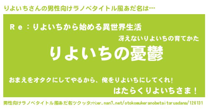 | 胡散臭い通販商品みたいなあだ名 | 『必ず成功する水晶球…その名も「りよいち」』 |