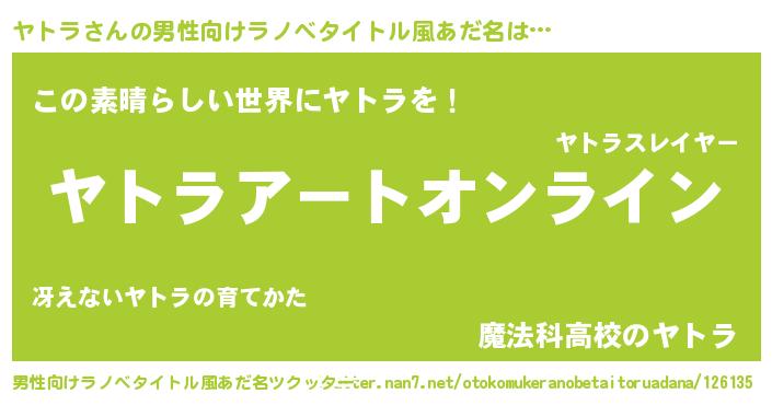 | 意味不明あだ名 | 『ペロリンヤトラ』『自称ヤトラ』 |